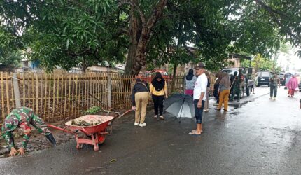 TAKALAR Danramil 1426-03/Galut Pimpin Kegiatan Kerja Bakti Bersama Warga Bersihkan Selokan