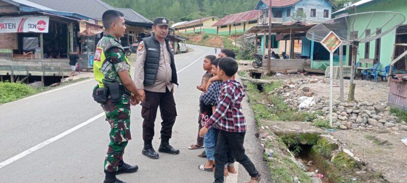 Kegiatan yang ditunjukkan memantau perkembangan situasi di wilayah, juga disempatkan waktunya untuk bercengkrama dengan anak-anak yang sedang bermain.
