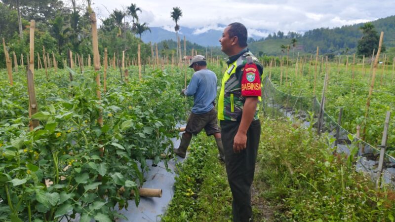 Tingkatkan Ketahanan Pangan, Babinsa Dampingi Petani Merawat Tanaman Tomat