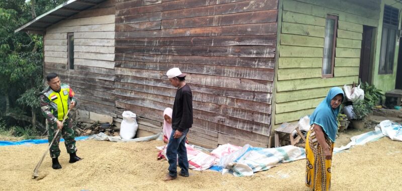 Babinsa Koramil 07/Belangjerango Kodim 0113/Gayo Lues membantu petani yg sedang menjemur padi usai dipanen beberapa waktu lalu. Terlihat Babinsa Kopda Bayu Permana ikut bersama petani menjemur padi di Desa Belangjerango Kecamatan Belangjerango Kab.Gayo Lues,Kamis (06/02/2025).