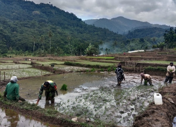 Di sela-sela kegiatan, Babinsa melaksanakan pendampingan petani menanam padi di sawah wilayah binaannya sebagai wujud kepedulian untuk membantu meringankan beban warga binaannya yang berprofesi sebagai petani, Sertu Idinsyah Babinsa Koramil 05/Pining Kodim 0113/Gayo lues mendampingi petani menanam padi di Desa Pining kecamatan Pining.