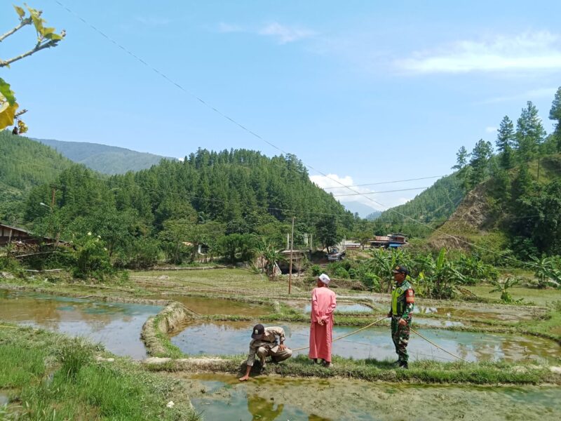 Koramil 07/Blangjerango Kopda Rian bersama PPL lakukan pendampingan pertanian kepada petani di wilayah binaan dalam penyiapan lahan sawah di Desa Ketukah Kecamatan Blangjerango Kab. Gayo Lues