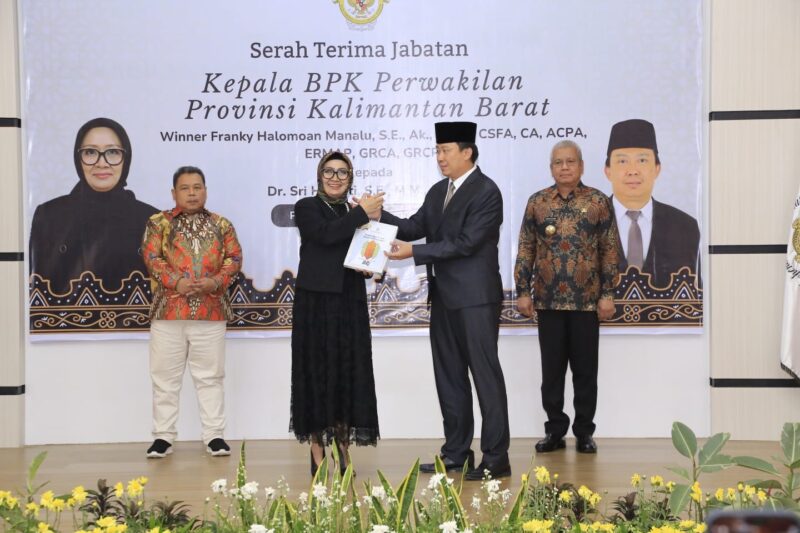 SERTIJAB- Kepala BPK Perwakilan Provinsi Kalimantan Barat, Dr. Sri Haryati, S.E, M.M, CSFA, resmi Sertijab dari Winner Franky Halomoan Manalu, S.E, Ak, M.Ak, CSFA, CA, ACPA, ERMAP, GRCA, GRCP, yang sekarang menjabat Kepala BPK Perwakilan Provinsi Sulawesi Selatan, disaksikan Anggota VI BPK RI, Drs. H. Fathan Subchi, M.A.P, CIISA, ChFA dan Pj. Gubernur Kalbar, dr. Harisson, M.Kes. (Foto Humas).