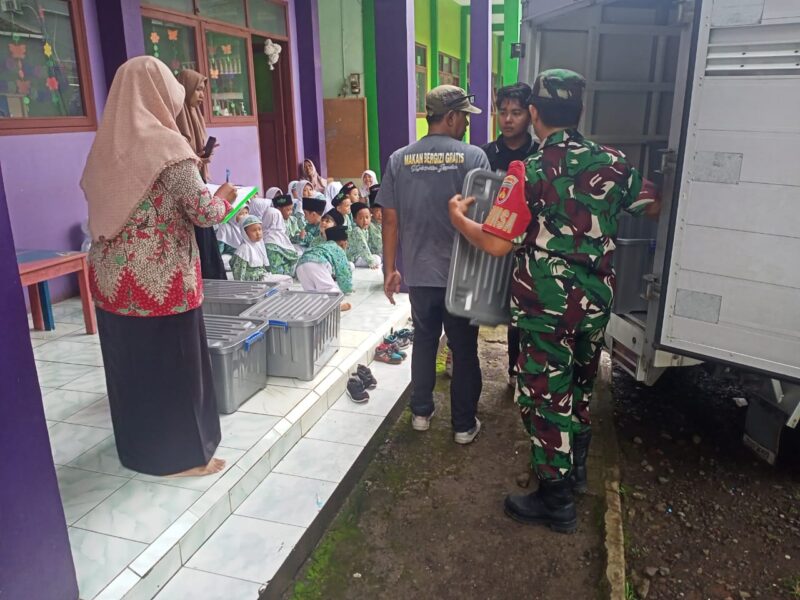 Saat mendampingi pendistribusian, Babinsa memastikan kualitas makanan yang diberikan sudah sesuai standar gizi serta memastikan seluruh siswa mendapatkan manfaat dari program ini.