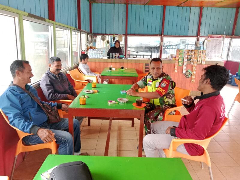 Dalam kesempatan ini juga, Babinsa Sertu Hendra kusuma menyempatkan diri untuk menyapa dan bersilaturrahmi dengan warga masyarakat yang sedang berkumpul di salah satu tempat warung Kopi
