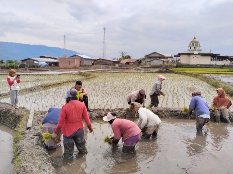 Kopda Budi S P Barus Koramil 07/Belangjerango Kodim 0113/Gayo Lues,melakukan pendampingan ketahanan pangan menanam padi bersama kelompok tani Makmur Jaya dengan luas lahan sekitar 1400.Kamis (20/02/2025).