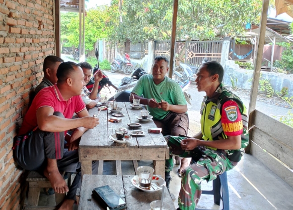 Serda Sudirman Babinsa Koramil 05/Pining melaksanakan kegiatan anjangsana komsos bersama masyarakat desa di salah satu kedai kopi di desa Uring kec.Pining Kab.Gayo Lues,