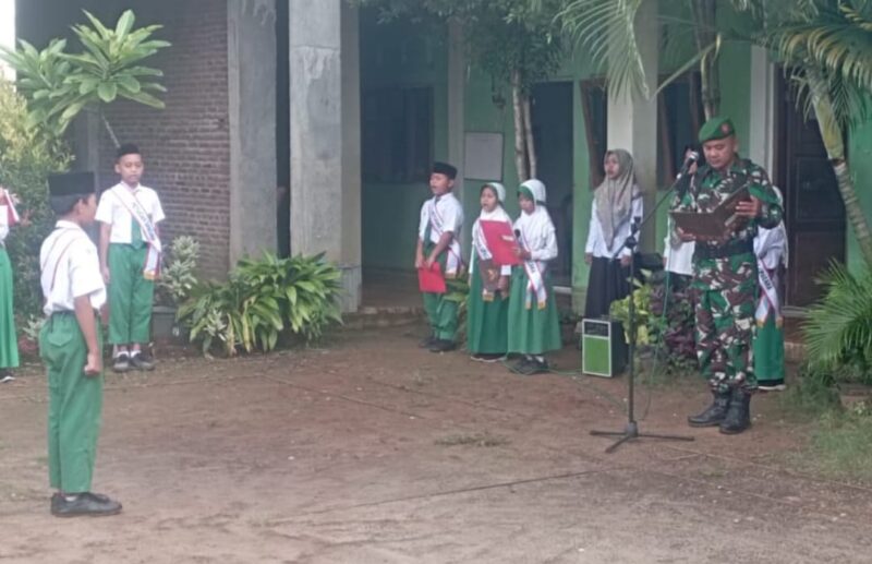Jepara 24-2-2025– Pelda Musa Abdullah, anggota Kodim 0719/Jepara, bersama satu anggota Koramil 09/Mlonggo, melaksanakan kegiatan sebagai pembina upacara bendera di halaman MI Al Islam Sekuro, Kecamatan Mlonggo, Kabupaten Jepara, pada Senin (24/02/2025).