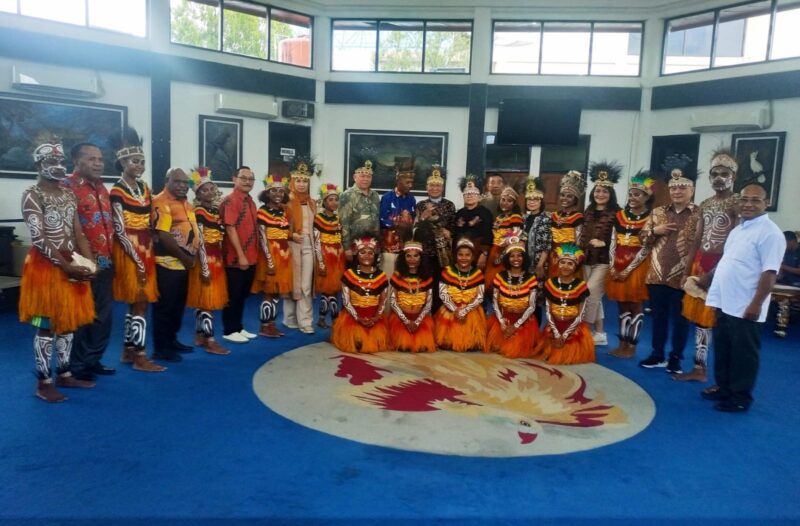 Sentani, Papua – Rombongan Dewan Pengurus Pusat Satuan Kerja Kesejahteraan Prajurit (DPP SKKP) melakukan kunjungan kerja ke Tanah Papua selama 3 hari, sejak Senin (24/02/2025). Setiba di Bandara Sentani, Jayapura, pada pukul 07.30 Waktu Papua, Tim yang dipimpin langsung oleh Ketum SKKP, Drs. Hilman Thayeb Mandagi ini disambut dengan Tarian Adat Penyambutan Tamu dari sejumlah pelajar dari beberapa SMP di Sentani.