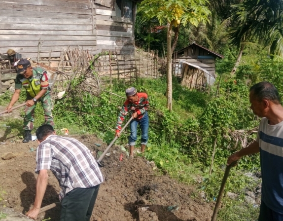 Pining, Dalam rangka menyambut bulan suci Ramadhan, Babinsa Koramil 05/pining Serda Idinsyah bersama warga melaksanakan gotong royong membersihkan Meunasah di Desa Pintu rime, Kecamatan Pining, Kabupaten Gayo Lues, Kamis (27/02/2025).