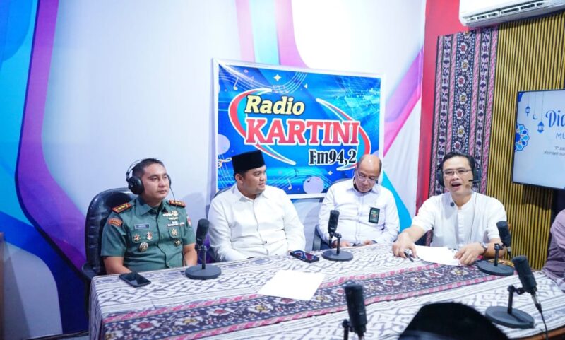 Jepara 10-3-2025– Komandan Kodim 0719/Jepara, Letkol Arm Khoirul Cahyadi, S.E., turut menghadiri acara Dialog Interaktif yang diselenggarakan oleh Majelis Ulama Indonesia (MUI) Kabupaten Jepara, bekerja sama dengan Forum Koordinasi Pimpinan Daerah (Forkopimda), di Radio Kartini FM Jepara. Acara ini mengangkat tema “Puasa, Etos Kerja & Kiat Mewujudkan Konsensus Masyarakat Rukun, Aman & Damai” dalam rangka menyambut bulan suci Ramadhan.