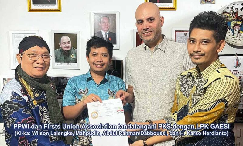 Jakarta – Sebagai tindak lanjut dari rencana kerja sama organisasi Persatuan Pewarta Warga Indonesia (PPWI) bersama mitra konsorsiumnya, Firsts Union Association, dengan Lembaga Pelatihan Kerja Galuh Essa International (LPK GAESI), ketiga pihak sepakat menandatangani Perjanjian Kerja Sama (PKS). Hal ini disampaikan Ketum PPWI, Wilson Lalengke, kepada media ini pada Senin, 10 Maret 2025.