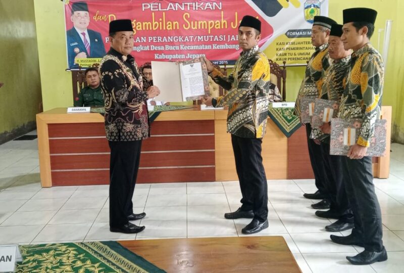 Jepara, 12 Maret 2025 – Kegiatan Pelantikan Mutasi Jabatan dan Pengambilan Sumpah Janji Perangkat Desa di Kecamatan Kembang, Kabupaten Jepara, telah berlangsung dengan sukses di Balai Desa Bucu. Kegiatan ini dihadiri oleh sejumlah pejabat penting, termasuk Koptu Supriyanto, Babinsa Kodim 0719/Jepara, yang mewakili Danramil 07/Bangsri, Kapten Inf Sumidi.