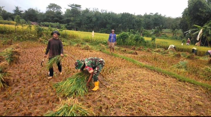 Sertu Nanang Babinsa Kodim 0719/Jepara Julianto Laksanakan Pendampingan Serapan Panen Padi di Desa Bumiharjo