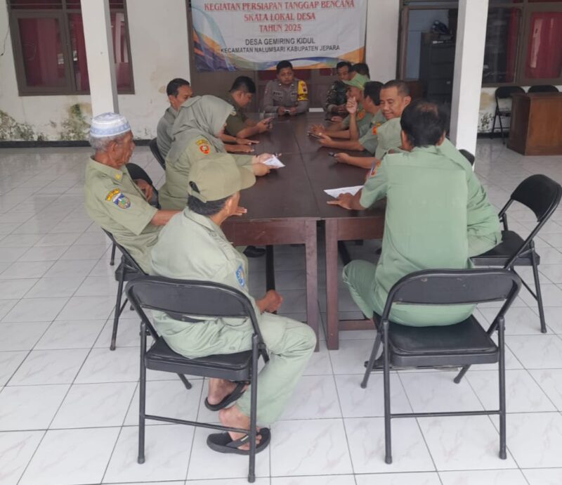 Jepara 27-3-2025– Anggota Koramil 05/Mayong, Serda Juraemi, melaksanakan kegiatan koordinasi terkait persiapan tanggap bencana skala lokal di Desa Gemiring Kidul, Kecamatan Nalumsari, Kabupaten Jepara, pada Kamis (27/03/2025). Kegiatan ini melibatkan Linmas Desa Gemiring Kidul dan bertujuan untuk meningkatkan kesiapsiagaan masyarakat dalam menghadapi kemungkinan bencana yang dapat terjadi di wilayah tersebut.