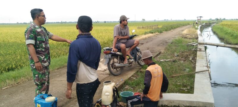 Serma Mohadi Babinsa Desa Telukwetan Laksanakan Komsos dengan Petani di Lokasi Persawahan Teluk Wetan