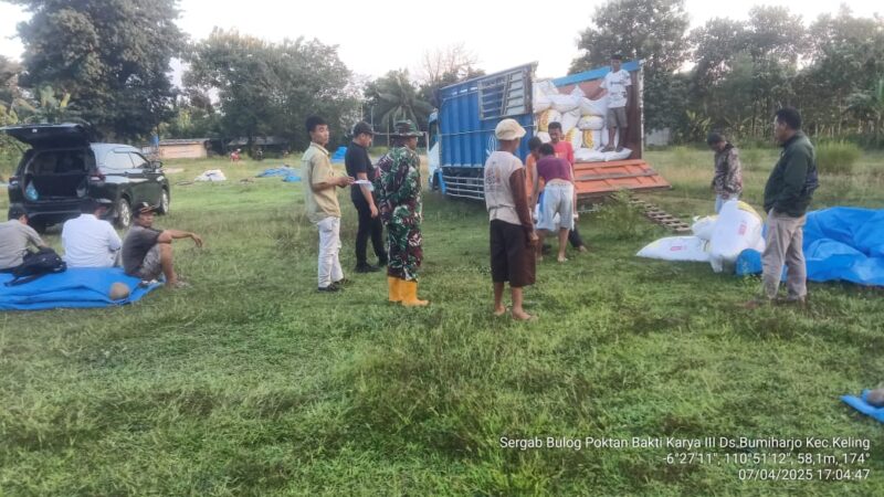 Jepara, 7 April 2025 – Babinsa Desa Bumiharjo, Sertu Nanang Julianto, bersama Penyuluh Pertanian Lapangan (PPL) Keling dan pihak Bulog, melaksanakan kegiatan pendampingan petani dalam rangka panen padi di persawahan Blok Sumberejo, Desa Bumiharjo, Kecamatan Keling, Kabupaten Jepara.