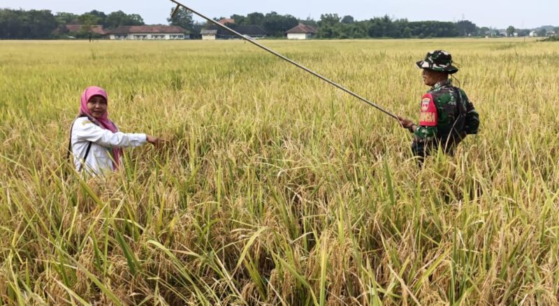 Babinsa Desa Mulyoharjo Serda Suhartono Bersama PPL Kecamatan Jepara Melaksanakan Ubin Pengambilan Sampel Panen Padi