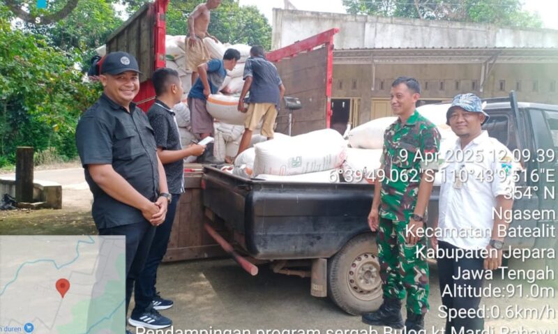 Jepara, 9 April 2025 – Babinsa Desa Ngasem, Koptu Ariyadi, yang merupakan anggota Koramil 03/Batealit, Kodim 0719/Jepara, melaksanakan pendampingan dalam kegiatan pembelian hasil panen milik Kelompok Tani (Poktan) Mardi Rahayu di Desa Ngasem, Kecamatan Batealit, Kabupaten Jepara, oleh Bulog Jepara. Kegiatan ini bertujuan untuk mendukung para petani dalam memasarkan hasil panen mereka dan meningkatkan kesejahteraan kelompok tani setempat.