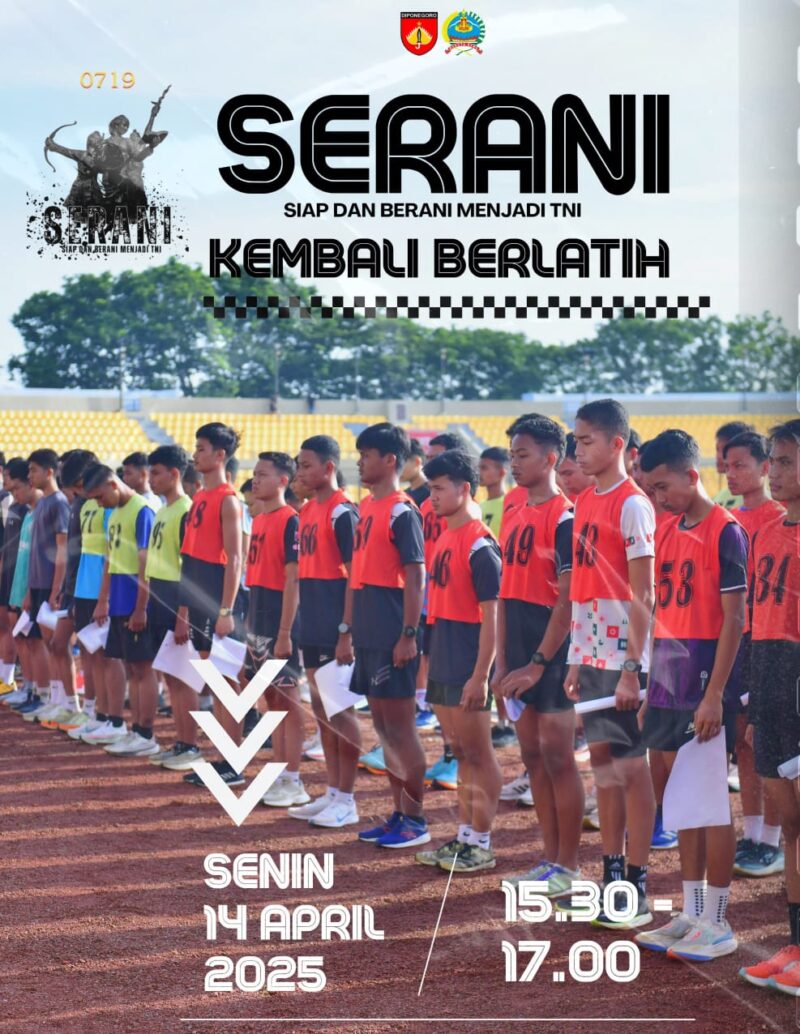 Jepara 14-4-2025– Program SERANI (Siap dan Berani Menjadi TNI) yang digagas oleh Kodim 0719/Jepara akan kembali dilaksanakan mulai 14 April 2025. Program ini bertujuan untuk memberikan pelatihan dan pembekalan kepada pemuda-pemudi di Kabupaten Jepara yang berminat untuk menjadi prajurit TNI.