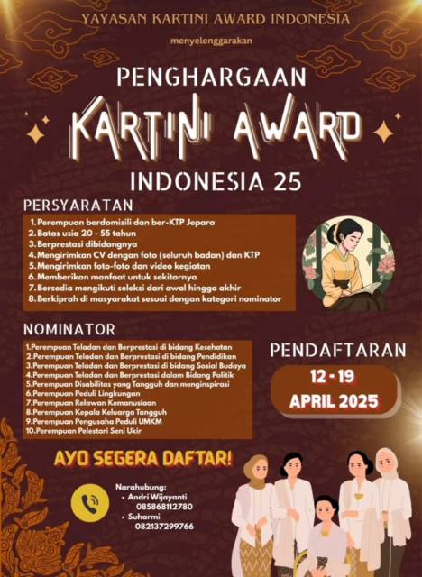 Jepara– Dalam rangka memperingati Hari Kartini yang jatuh pada tanggal 21 April, Yayasan Kartini Award menyelenggarakan ajang bergengsi Kartini Award Indonesia 2025. Kegiatan ini merupakan bentuk apresiasi dan penghormatan terhadap peran serta kiprah perempuan masa kini yang telah memberikan kontribusi nyata di berbagai sektor kehidupan masyarakat.
