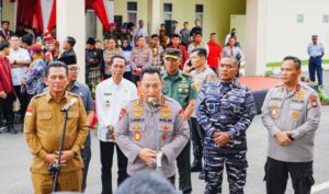 “Dan ini tentunya hanya bisa kita lakukan kalau kita bersama-sama menghadapinya dengan kompak, dengan solid, dengan semangat. Sehingga permasalahan-permasalahan yang terjadi, yang tentunya bisa berdampak terhadap situasi-situasi kamtibmas, terhadap situasi-situasi yang akan menganggu pertumbuhan ekonomi ini kita bisa hadapi,” ucap Sigit.