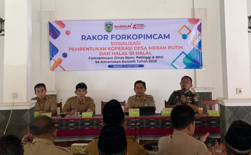 Jepara – Pada hari ini, Senin, 14 April 2025, Komandan Koramil 03/Batealit, Kapten Arh Elfian JS, menghadiri acara Rapat Koordinasi (Rakor) Forkopimcam yang diadakan di Pendopo Kecamatan Batealit. Acara tersebut diselenggarakan dalam rangka sosialisasi pembentukan Koperasi Desa Merah Putih serta kegiatan Halal Bi Halal.