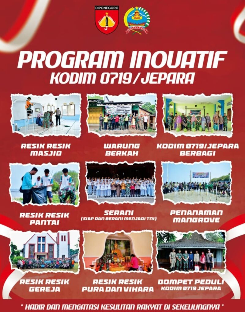 Jepara 23-4-2025— Dalam semangat membangun desa dari hati dan dengan aksi nyata, Komandan Kodim 0719/Jepara, Letkol Arm Khoirul Cahyadi, S.E., menghadirkan terobosan sosial yang terus digaungkan sejak awal masa kepemimpinannya. Melalui berbagai program inovatif seperti Warung Berkah, Dompet Peduli, Resik-Resik Masjid, dan Resik-Resik Gereja, Kodim 0719/Jepara telah memberikan dampak langsung kepada masyarakat lintas agama dan lintas wilayah di Kabupaten Jepara.