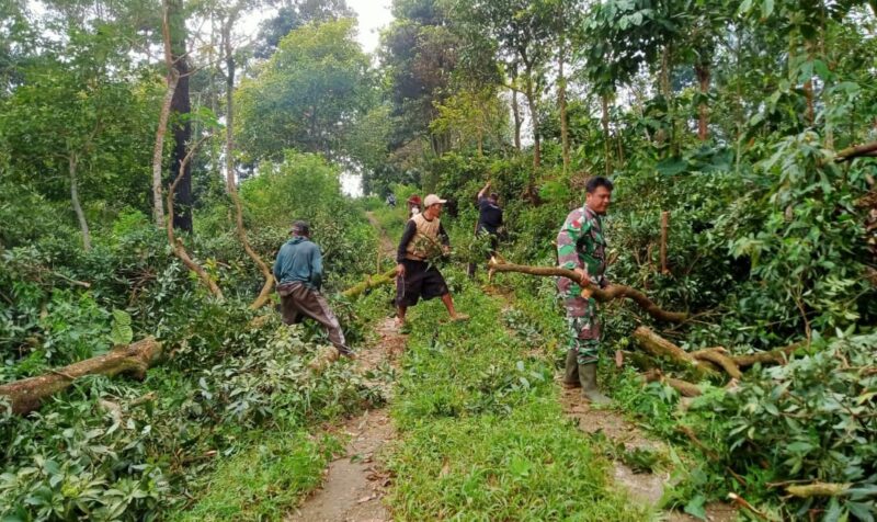 Babinsa Desa Kunir Bersama Warga Bersihkan Pohon Tumbang Akibat Hujan dan Angin Kencang