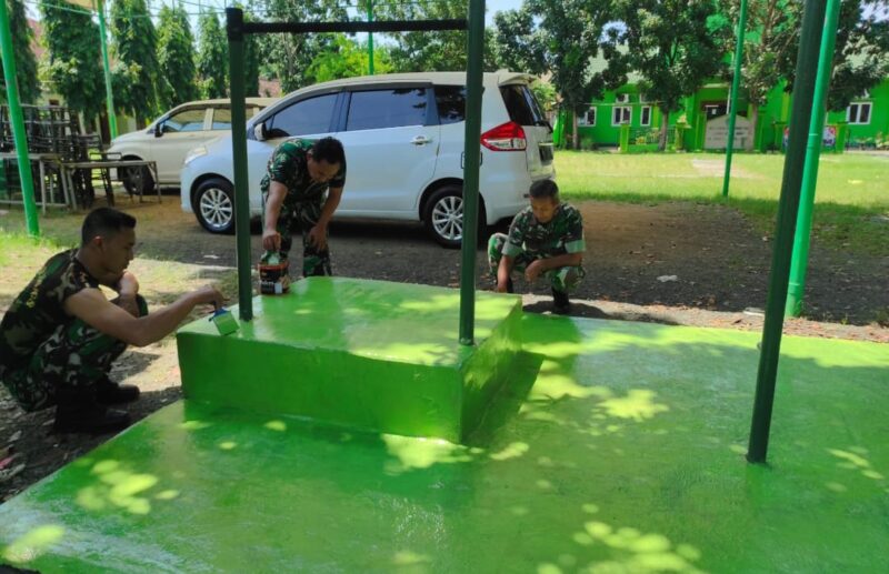 Dukung Program SERANI, Koramil 05/Mayong Laksanakan Pengecatan Tempat Pull Up