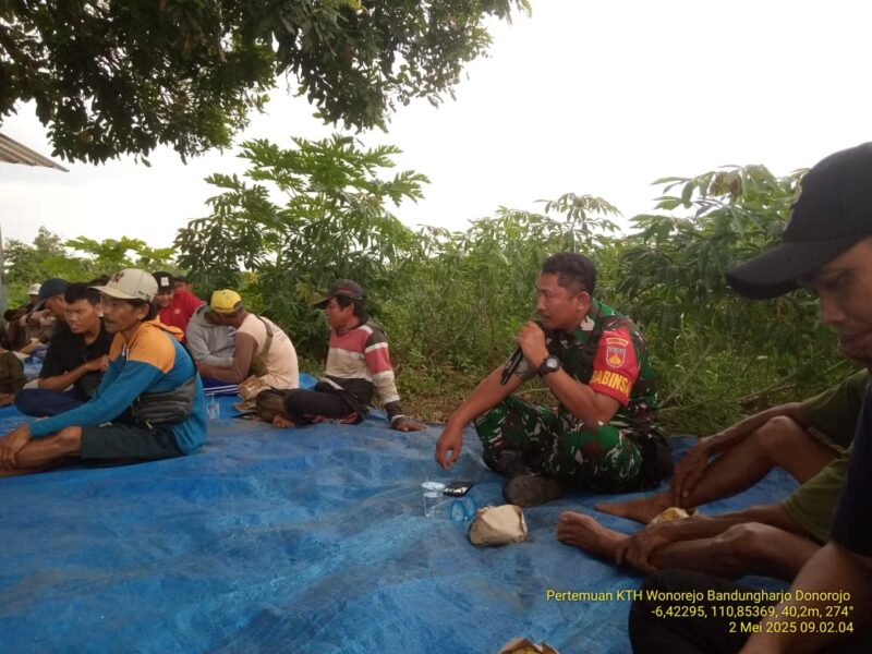 Jepara 2-5-2025– Babinsa Desa Bandungharjo, Koramil 05/Mayong, Kodim 0719/Jepara, Sertu Yustanto menghadiri kegiatan koordinasi antara petani hutan dengan Penyuluh Pertanian Lapangan (PPL) Donorojo yang dilaksanakan di Desa Bandungharjo, Kecamatan Donorojo, Kabupaten Jepara, Jumat (2/5).