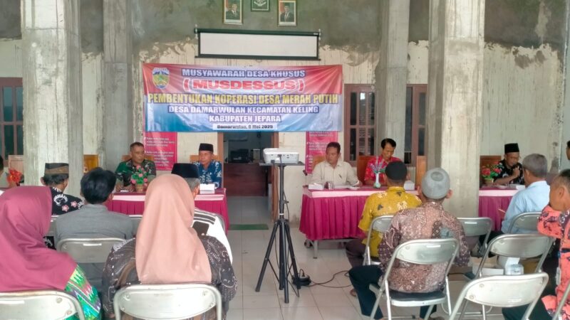 Jepara 8-5-2025 – Dalam rangka mendukung pemberdayaan ekonomi masyarakat desa, Danramil 08/Keling, Lettu Cke Yunius Wibisono didampingi Babinsa Desa Damarwulan, Pelda Abdul Munif, menghadiri kegiatan Musyawarah Desa Khusus (Musdessus) dengan agenda Pembentukan Koperasi Desa Merah Putih. Kegiatan ini berlangsung di Balai Desa Damarwulan, Kecamatan Keling, Kabupaten Jepara, pada Kamis (8/5).