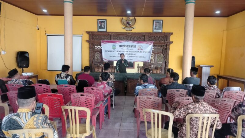 Jepara 8-5-2025– Dalam rangka mendorong kemandirian ekonomi masyarakat desa, Babinsa Desa Bulungan, Sertu Khoirul dari Koramil 05/Pakis Aji Kodim 0719/Jepara menghadiri Musyawarah Desa Khusus (Musdesus) yang digelar di Pendopo Balai Desa Bulungan, Kecamatan Pakis Aji, Kabupaten Jepara, Kamis (8/5). Musdesus ini bertujuan untuk membentuk koperasi desa yang diberi nama Koperasi Merah Putih Desa Bulungan.