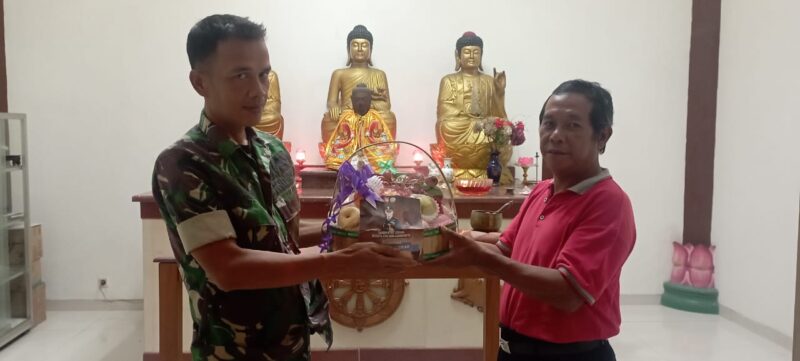 Jepara 11-5-2025– Dalam rangka memperingati Hari Raya Waisak 2569 BE / 2025 M, Danramil 01/Jepara, Kapten Inf Taufik Mawardi, S.H., M.H., melalui perwakilannya Serda Suhartono menyerahkan parcel kepada pengurus Vihara Bhodi Jaya Manggala yang berlokasi di Kelurahan Kauman, Kecamatan Jepara Kota, Kabupaten Jepara, Minggu (11/5/2025).