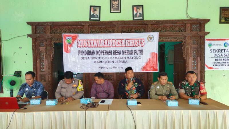 Jepara 15-5-2025– Babinsa Desa Ngroto, Serda Abdullah, yang bertugas sebagai anggota Koramil 05/Mayong, melaksanakan pemantauan wilayah dan menghadiri undangan Musyawarah Desa Khusus (MUSDESUS) di Balai Desa Ngroto, Kecamatan Mayong, Kabupaten Jepara. Kegiatan ini membahas dua agenda penting, yaitu pembentukan Koperasi Desa Merah Putih dan pembentukan Tim Pelaksana Pendataan Indeks Desa Tahun 2025.
