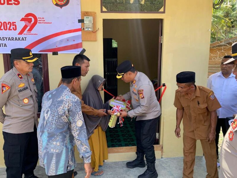 Blangkejeren — Dalam rangka memperingati Hari Bhayangkara ke-79 yang jatuh pada tahun 2025, Kepolisian Resor Gayo Lues melaksanakan kegiatan bakti sosial sebagai wujud kepedulian kepada masyarakat. Salah satu bentuk kegiatan tersebut adalah penyerahan infak personel Polres Gayo Lues yang ditujukan untuk mendukung program bedah rumah bagi warga kurang mampu. Kegiatan ini berlangsung pada Senin, 30 Juni 2025, sekitar pukul 12.00 WIB, berlokasi di Desa Uyem Beriring, Kecamatan Tripe Jaya, Kabupaten Gayo Lues.
