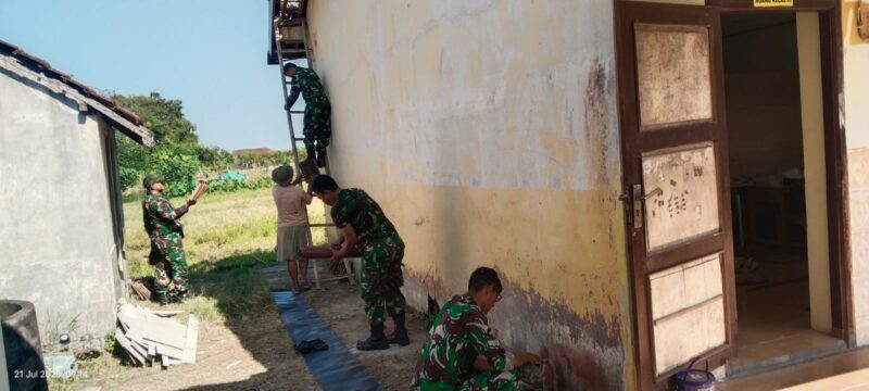 Anggota Koramil 04/Pecangaan Laksanakan Karya Bakti Rehab SDN 3 Kaliombo