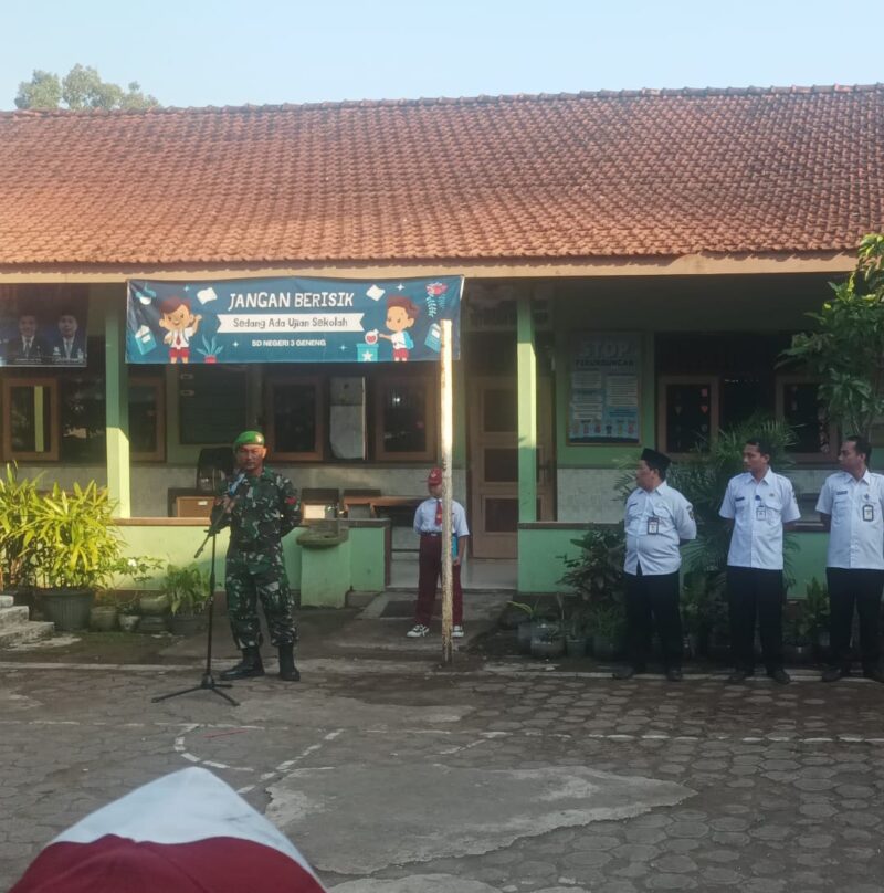 Babinsa Koramil 03/Batealit Hadiri Upacara di SDN 03 Geneng, Sisipkan Materi Wawasan Kebangsaan