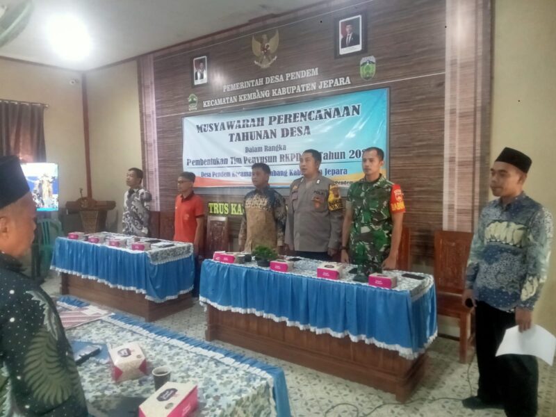 Jepara, 25 Juli 2025 — Dalam rangka mendukung proses perencanaan pembangunan desa secara partisipatif dan transparan, Serka Udik Nurgianto, Babinsa Desa Pendem anggota Koramil 07/Bangsri Kodim 0719/Jepara, menghadiri kegiatan Musyawarah Perencanaan Tahunan Desa dalam rangka pembentukan Tim Penyusun Rencana Kerja Pemerintah Desa (RKPDes) Tahun 2026. Kegiatan ini berlangsung di Balai Desa Pendem, Kecamatan Kembang, Kabupaten Jepara.