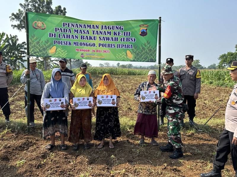 Sebagai bentuk sinergi antara TNI, Polri, dan pemerintah desa dalam mendukung ketahanan pangan dan membantu masyarakat kurang mampu, Babinsa Koramil 09/Mlongo, Pelda Musa Abdullah, melaksanakan kegiatan penanaman jagung bibit unggul jenis Perkasa serta pemberian bantuan sosial (bansos) kepada warga kurang mampu di Desa Mororejo, Kecamatan Mlongo, Kabupaten Jepara.