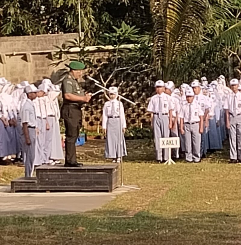 Jepara 28-7-2025 – Dalam rangka membina kedisiplinan dan menanamkan nilai-nilai kebangsaan kepada generasi muda, Danramil 02/Kedung, Kodim 0719/Jepara, Kapten Arm Budi S.P., melaksanakan kegiatan sebagai Pembina Upacara Bendera di SMK Negeri 1 Kedung, Kabupaten Jepara, pada Senin pagi (28/7). Kegiatan ini merupakan bagian dari program pembinaan teritorial TNI AD yang secara rutin dilaksanakan di wilayah binaan Koramil.