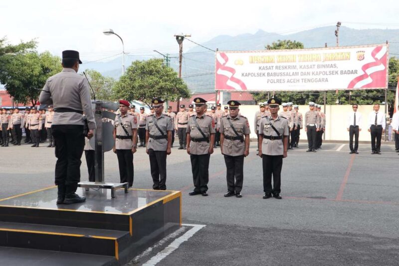 Kutacane — Empat jabatan strategis di lingkungan Polres Aceh Tenggara resmi mengalami pergantian. Hal tersebut ditandai dengan upacara serah terima jabatan (sertijab) yang dipimpin langsung oleh Kapolres Aceh Tenggara, AKBP Yulhendri di Lapangan Apel Mapolres Aceh Tenggara, Selasa pagi, 29 Juli 2025.