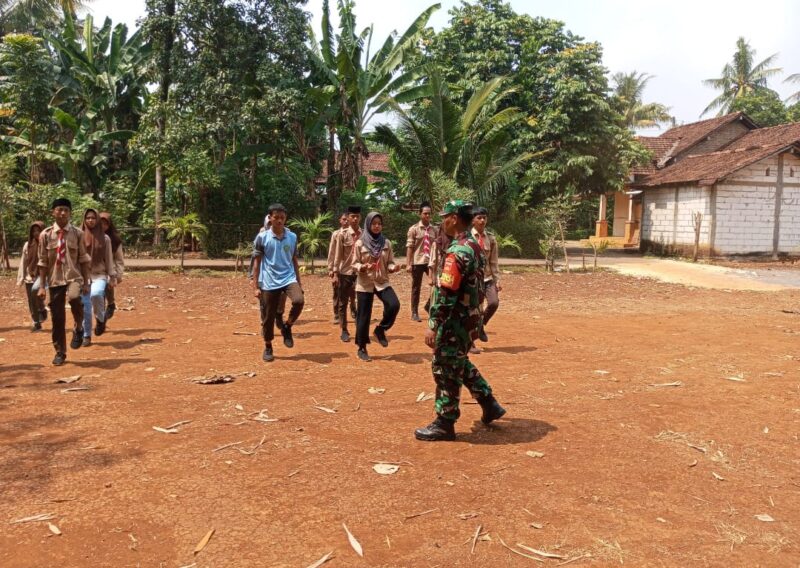 Babinsa Srobyong Latih Paskibra Jelang HUT RI ke-80 di Lapangan SMP Darunnajah