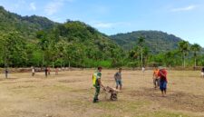 Gotong royong Babinsa Bersama Pemuda di Desa Pining Kecamatan Pining