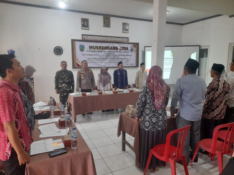 Jepara – Dalam rangka mendukung proses perencanaan pembangunan desa yang partisipatif dan berkelanjutan, Babinsa Desa Kriyan, Sertu Mohtadi, anggota Koramil 04/Pecangaan, menghadiri kegiatan Musyawarah Perencanaan Pembangunan Desa (Musrenbangdes) dalam rangka Penyusunan Rencana Kerja Pemerintah Desa (RKPDes) Tahun 2026 dan Daftar Usulan RKPDes (DU-RKPDes) Tahun 2027. Kegiatan ini dilaksanakan di Balai Desa Kriyan, Kecamatan Kalinyamatan, Kabupaten Jepara, Selasa (26/8/2025).