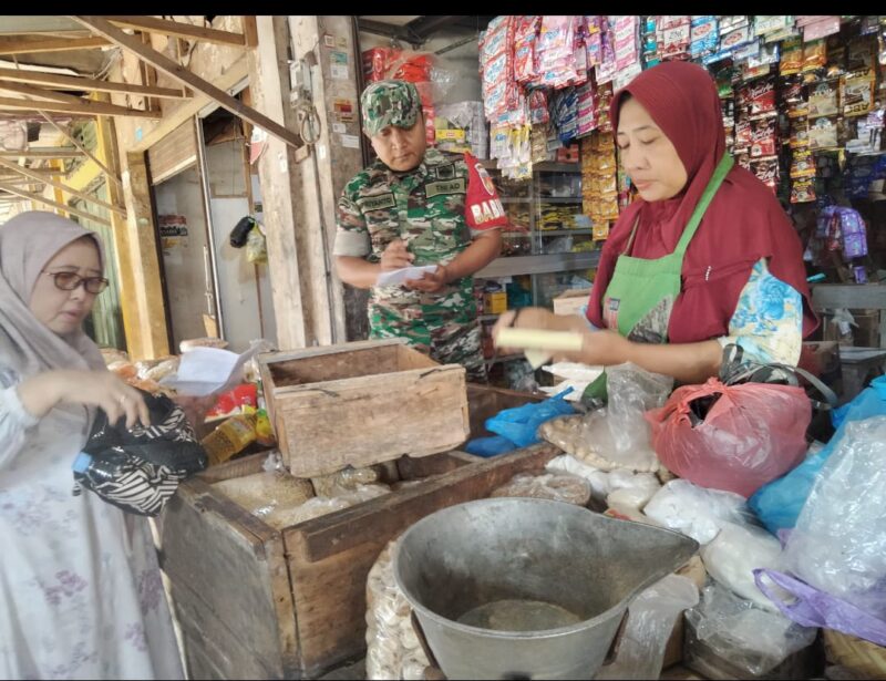 Jepara – Dalam rangka mendukung ketahanan pangan dan memastikan stabilitas harga kebutuhan pokok, anggota Koramil 07/Bangsri Koptu Supriyanto melaksanakan kegiatan monitoring dan pengecekan harga sembako di Pasar Tradisional Bangsri, Kecamatan Bangsri, Kabupaten Jepara, Jumat (29/8).
