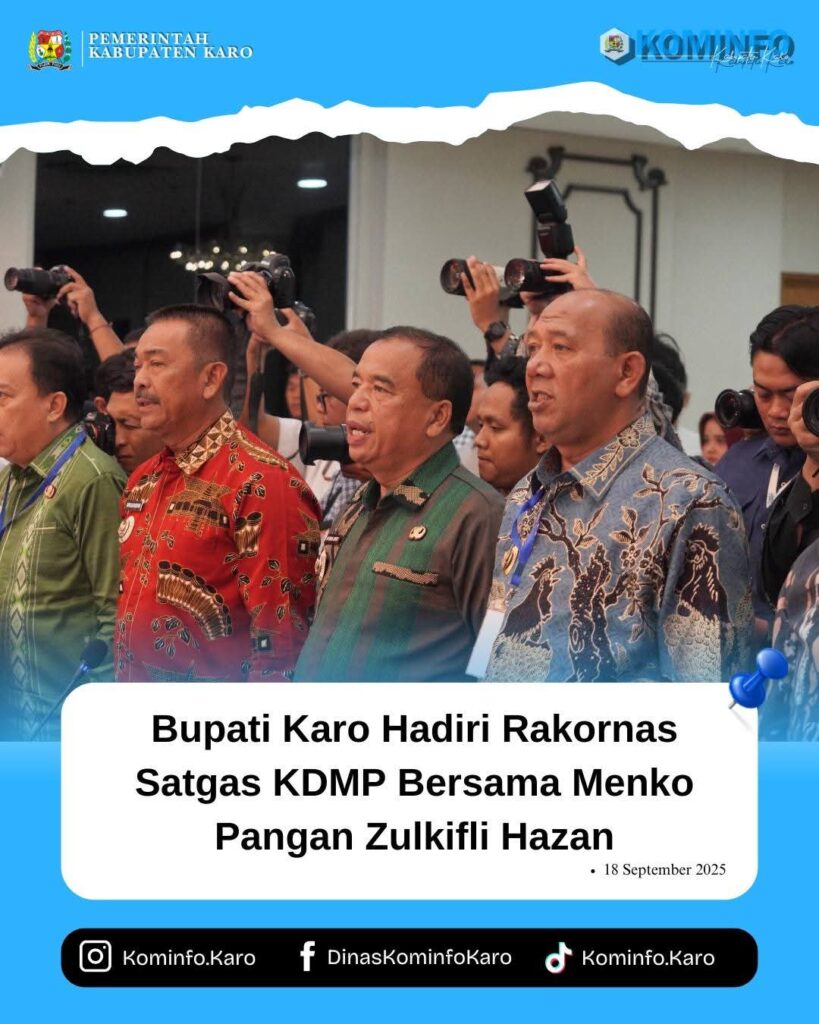 Bupati Karo Hadiri Rakornas Satgas KDMP Bersama Menko Pangan Zulkifli Hasan