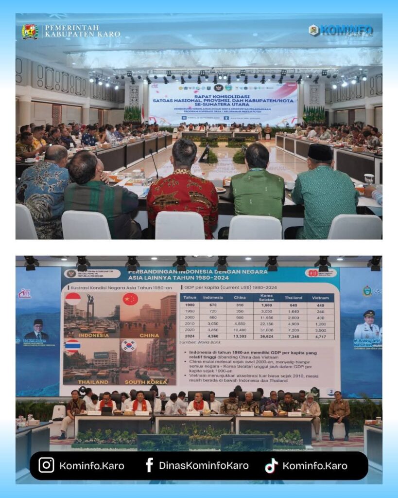 RadarNews.Nasional.com,Medan – Bupati Karo, Brigjen Pol (Purn) Dr. dr. Antonius Ginting, Sp.OG., M.Kes., menghadiri Rapat Konsolidasi Satuan Tugas (Satgas) Nasional, Provinsi, dan Kabupaten/Kota Koperasi Desa/Kelurahan Merah Putih (KDMP) di Aula Raja Inal Siregar, Kantor Gubernur Sumatera Utara, Jalan Diponegoro No. 30 Medan, Kamis (18/9/2025) malam.