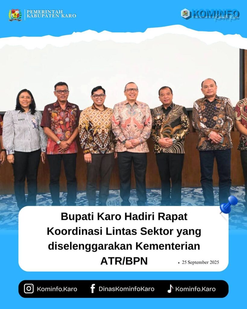 RadarNews.Nasional.com,Jakarta — Bupati Karo, Brigjen Pol (Purn) Dr. dr. Antonius Ginting, Sp.OG., M.Kes., menghadiri Rapat Koordinasi (Rakor) Lintas Sektor yang digelar oleh Direktorat Jenderal Tata Ruang, Kementerian Agraria dan Tata Ruang/Badan Pertanahan Nasional (ATR/BPN) pada Kamis (25/9) di Hotel Le Meridien, Jakarta. Rakor ini juga diikuti oleh berbagai kementerian/lembaga dan pemerintah daerah yang sedang menyusun dokumen RDTR.
