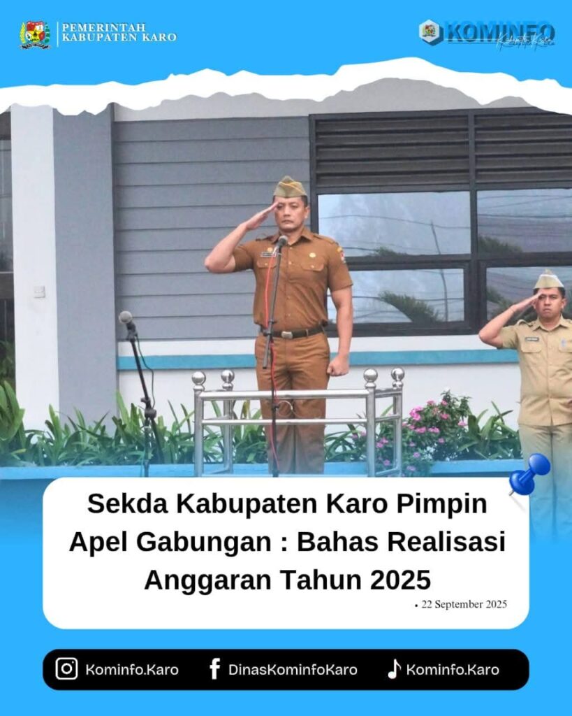 RadarNews.Nasional.com,Kabupaten Karo – Sekretaris Daerah (Sekda) Kabupaten Karo, Gelora Kurnia Putra Ginting, S.STP., M.M., memimpin Apel Gabungan Aparatur Sipil Negara (ASN) di lingkungan Pemerintah Kabupaten (Pemkab) Karo yang dilaksanakan di Halaman Kantor Bupati Karo, Senin (22/9).